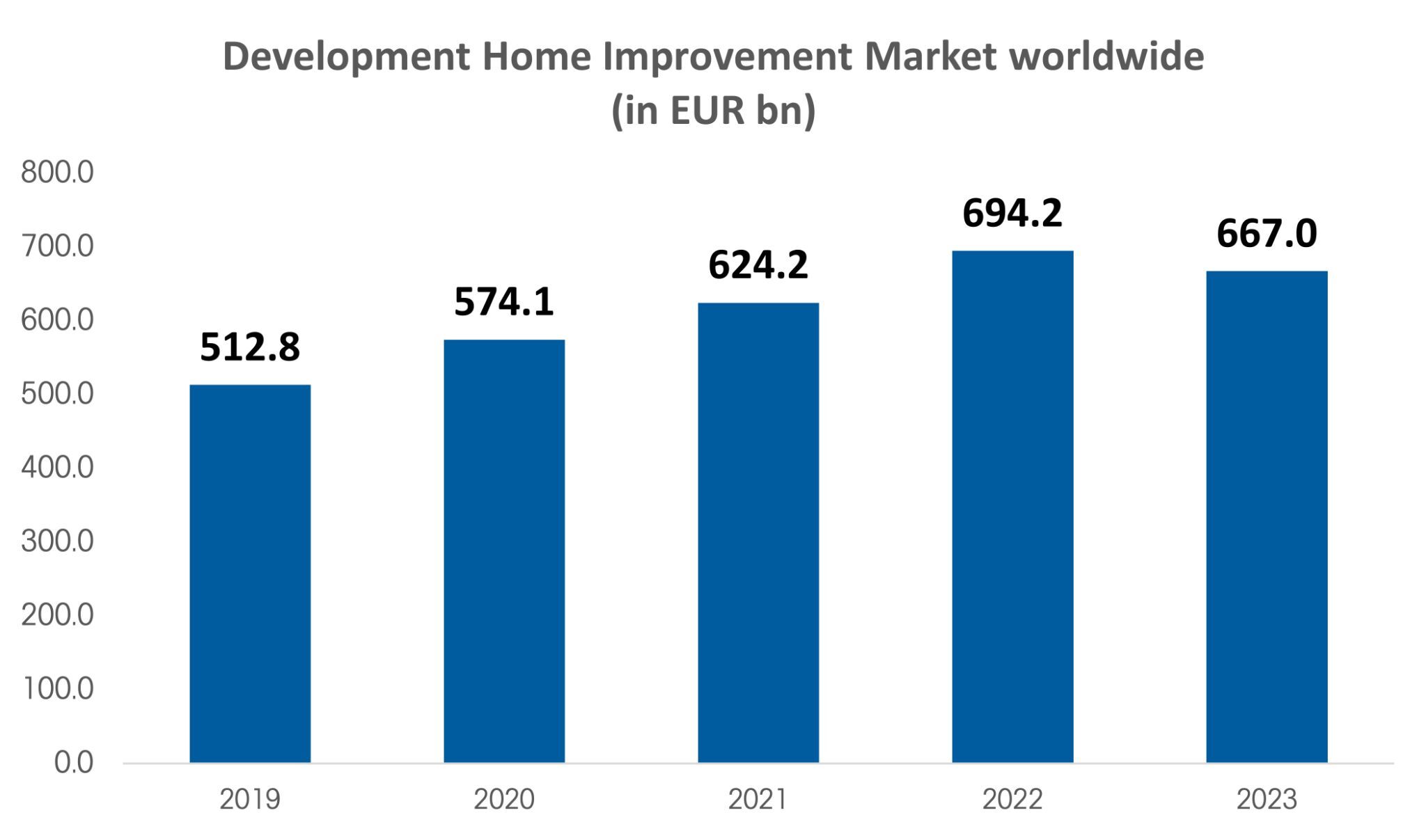 Il mercato globale del fai da te ha vissuto un 2023 difficile, raggiungendo un livello di 667 miliardi di euro, -3,9% rispetto al 2022.