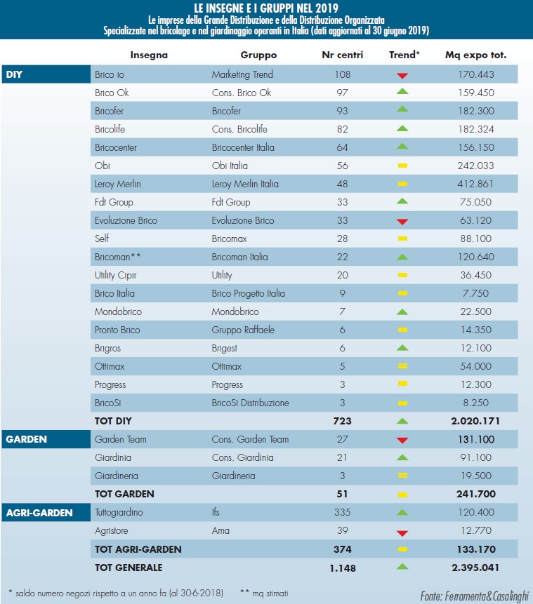 Analisi » Punti vendita brico-garden in Italia: l’evoluzione della rete nel 2019