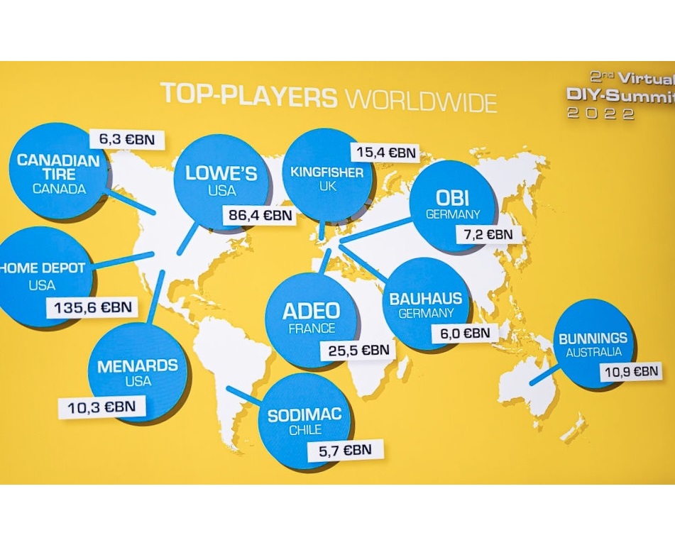 Nel corso del Virtual DIY Summit, l'evento organizzato dalle associazioni EDRA/GHIN e HIMA, sono stati diffusi i dati relativi al mercato globale del fai da te del mondo, con un focus sui fatturati delle principali insegne a livello mondiale.