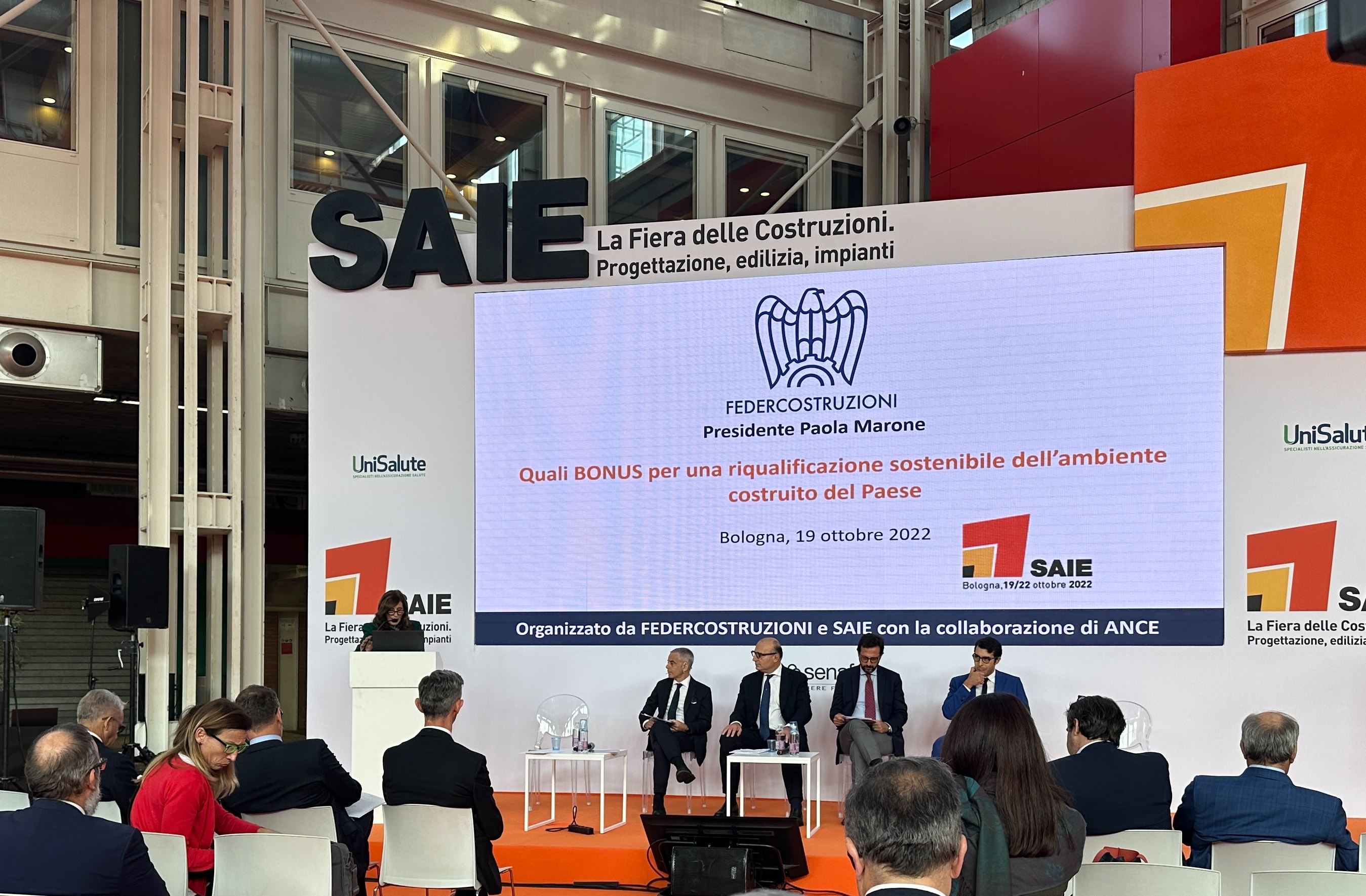 Il convegno –a cui hanno partecipato tra gli altri Paola Marone, Presidente Federcostruzioni; Federica Brancaccio, Presidente ANCE; Tommaso Foti, Onorevole; Daniele Manca, Senatore; Raffele Laudani, Assessore all'Urbanistica del Comune di Bologna; Leonardo Fornaciari, Ance Emilia Area Centro; Giorgio Lupoi, Presidente OICE; Armando Zambrano, Coordinatore della Rete delle professioni; Celso De Scrilli, Vice Presidente BolognaFiere; Ivo Nardella, Presidente di Senaf (la società del Gruppo Editoriale Tecniche Nuove che organizza SAIE) – è stata l’occasione per capire lo stato dell’arte della filiera, con un approfondimento sui bonus e sugli altri temi del momento, dalla riqualificazione sostenibile del patrimonio immobiliare pubblico e privato, all’aumento dei prezzi dell’energia e dei materiali. SAIE proseguirà fino al 22 ottobre mettendo al centro tutti i temi principali del sistema delle costruzioni e dell’ambiente costruito: efficienza energetica, sostenibilità ed integrazione edificio-impianto, cantiere, innovazione, infrastrutture, digitalizzazione, transizione ecologia, nuove esigenze dell’abitare e del costruire, con un punto di vista preciso che mantiene l’Uomo al centro. Quattro i saloni tematici: Progettazione e Digitalizzazione; Edilizia; Impianti; Servizi e media, e qui un’anteprima di tutte le iniziative speciali già attive.