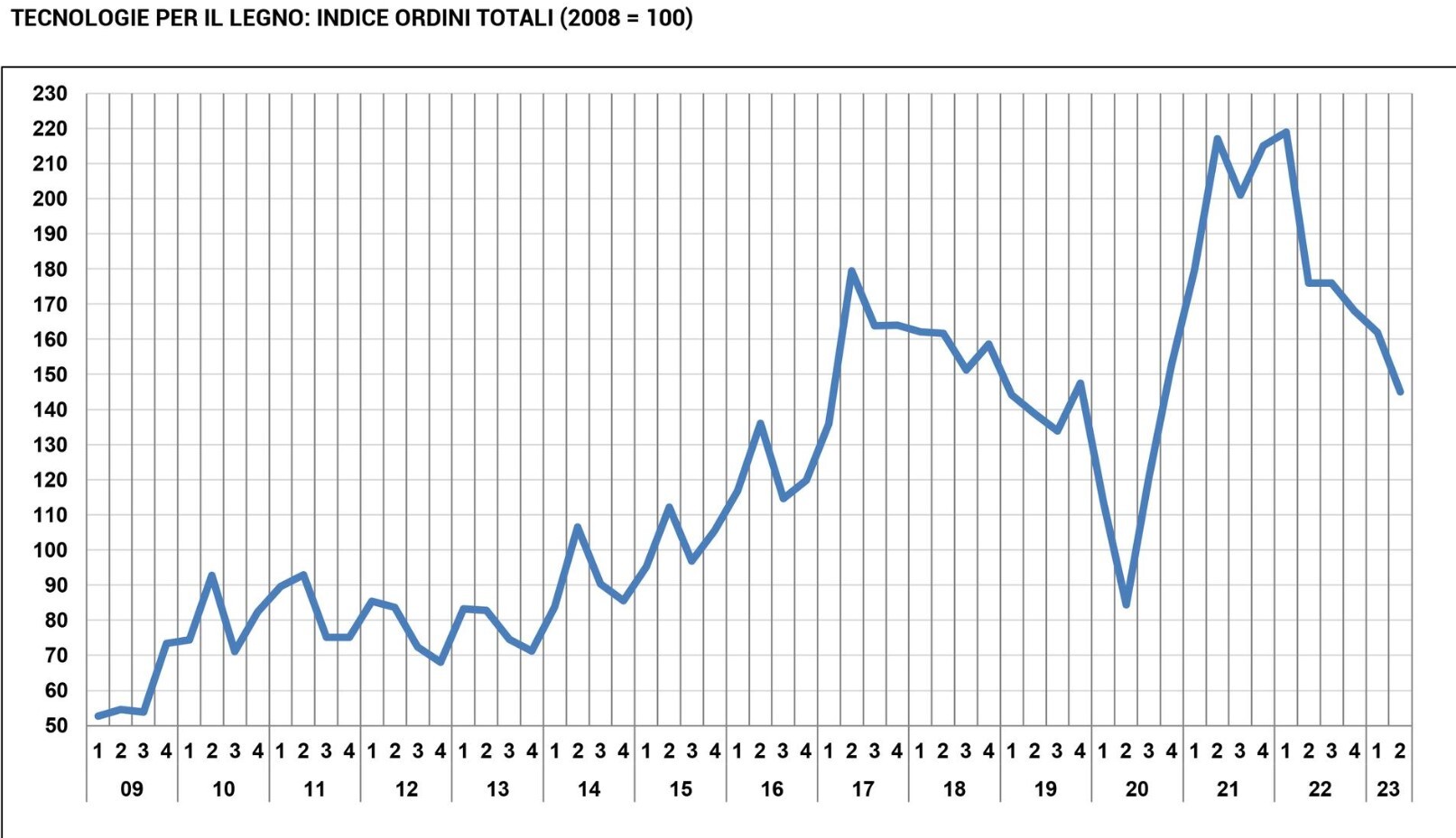 Il settore delle tecnologie per il legno e il mobile può contare su un portafoglio ordini con 5,2 mesi di produzione assicurata (lo stesso dato registrato nel trimestre precedente), mentre la variazione prezzi da inizio anno – che si è attestata all’1,2 per cento – rappresenta un raffreddamento dell’inflazione che ha caratterizzato il settore e l’economia in generale nell’ultimo biennio.
