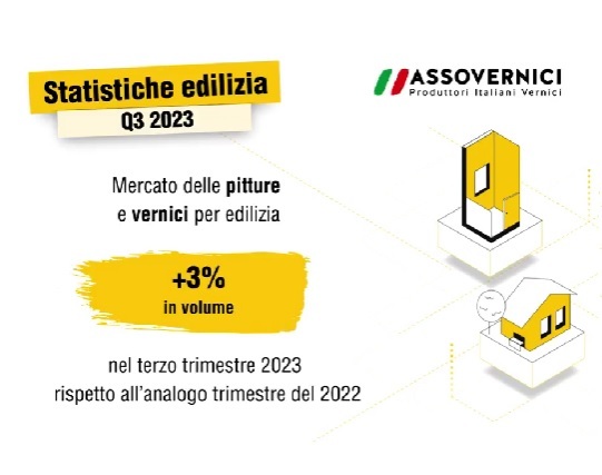 Nel terzo trimestre il mercato delle pitture e vernici per edilizia ha registrato un aumento in termini di volume di circa il 3% rispetto all’analogo trimestre del 2022. È quanto emerge dai dati raccolti dal monitoraggio del Comitato Settore Edilizia di Assovernici.