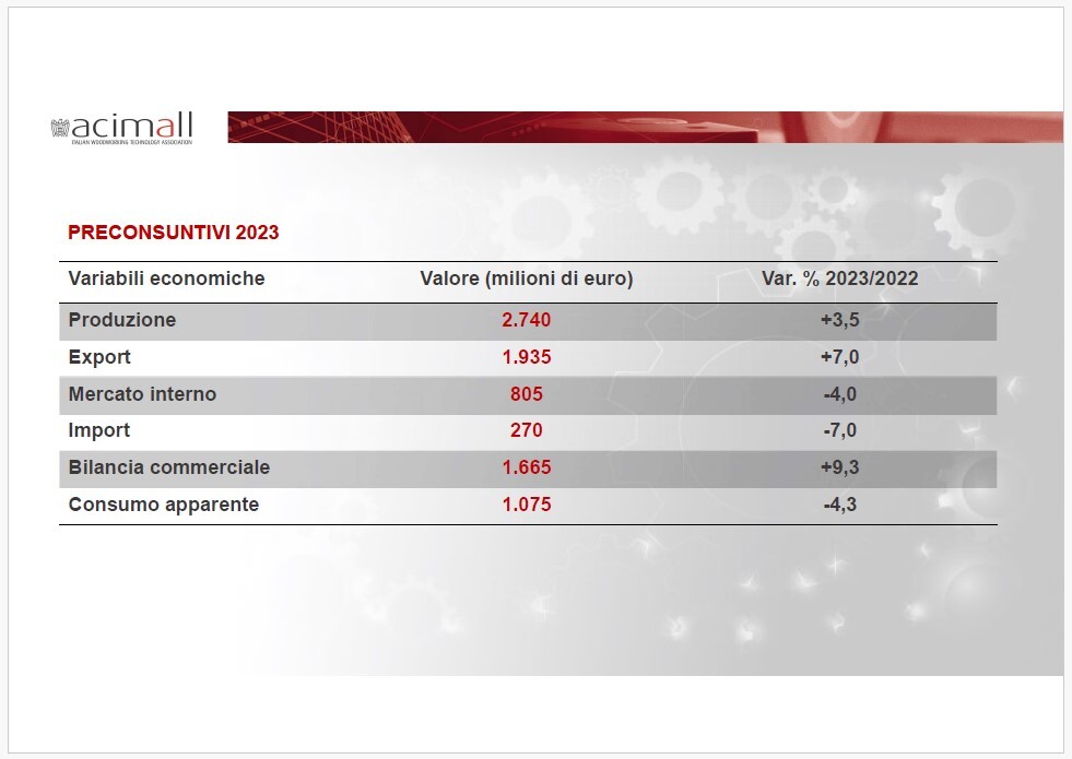 Il preconsuntivo 2023 elaborato dall’Ufficio studi di Acimall mostra una crescita del 3,5% della produzione rispetto al 2022.