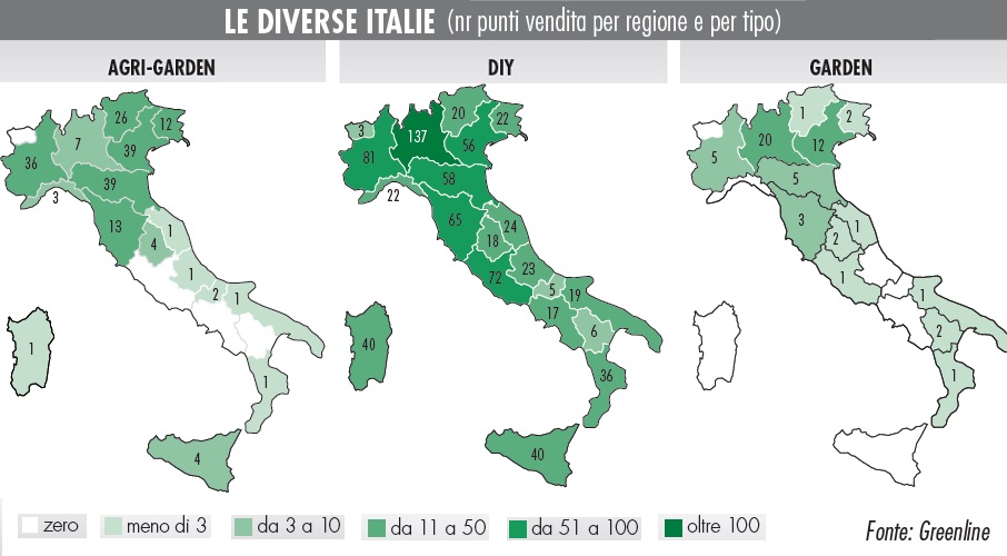 L’Italia presenta però una distribuzione disomogenea sul territorio, in particolare i canali specializzati nel giardinaggio.