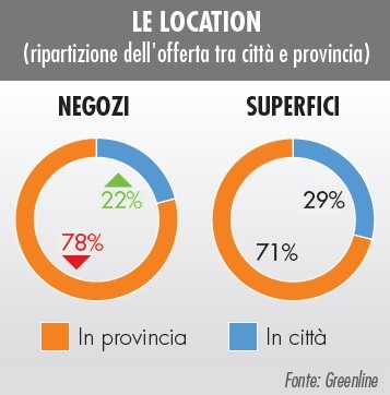 Nel centro Italia oltre a Roma spiccano Latina (41.600 mq), Perugia (33.300 mq) e Firenze (31.900 mq).