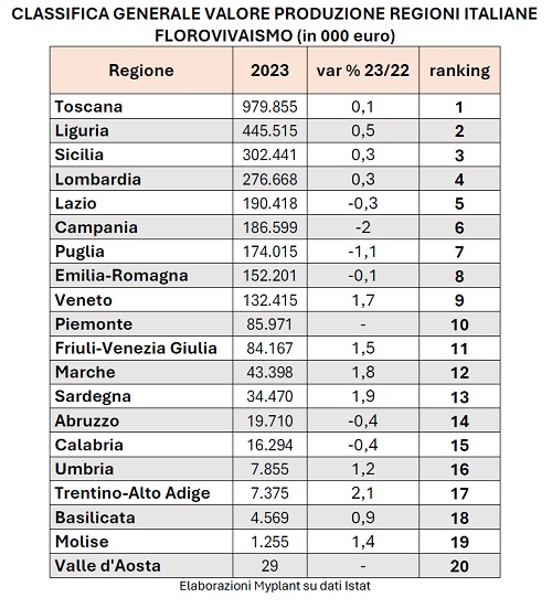La geografia del florovivaismo italiano nel 2023