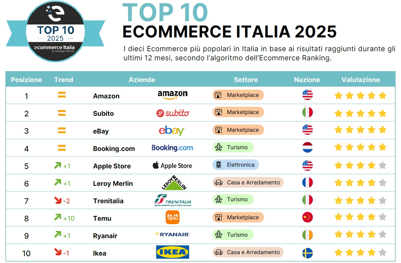 E' online la classifica 2025 dei siti di Ecommerce più popolari in Italia a cura di Casaleggio Associati.