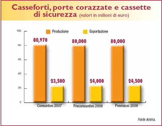 Secondo gli ultimi dati diffusi da Acica, Associazione Costruttori Italiani Casseforti, il comparto ha registrato nel 2008 una leggera flessione rispetto all’anno precedente (-1,2%), da imputare sia alla crisi finanziaria che ha bloccato i piani di sviluppo commerciale delle banche, rimandando l’apertura di nuove filiali, con ricadute negative per il settore, sia alla concorrenza dei paesi asiatici, che sono presenti sul mercato domestico con prezzi altamente competitivi. Anche gli investimenti hanno avuto un forte calo sia nel 2008 (-16,7%) sia nelle previsioni del 2009 (- 42,9%), questo perché il mercato soffre l’incertezza dei costi di manodopera, energia e materie prime. Concordi con questi dati economici sono le aziende Mottura, Cisa e Metallurgica Rivarolese, come spiegano dall’ufficio marketing di quest’ultima: “Il mercato è molto lento, la crisi mondiale ha toccato tutti i settori, intaccando la capacità di spesa e di risparmio, e non si vedono, al momento, cambiamenti positivi nell’immediato futuro”. Il 2008 di Domus Industriale, invece, si è chiuso con un discreto incremento delle vendite, anche se per il futuro preoccupano le previsioni negative del settore edile. Per Technomax, il mercato è sostanzialmente stabile, con un fatturato aziendale che si è attestato sui livelli dell’anno scorso, con una piccola crescita. Le previsioni per il 2009 sono buone, soprattutto per il secondo semestre. Il prodotto cassaforte ha una vita molto lunga e non viene rinnovato ogni anno, ma, con l’avvento della crisi economica e la corsa a tenere in casa i propri risparmi, da Assa Abloy, parlano di fiducia nel mercato e tassi di crescita promettenti. A essere premiati saranno i valori aggiunti del marchio, dell’alta qualità di prodotto e tecnologia, elementi distintivi per fronteggiare la concorrenza dei mercati asiatici. Secondo Gunnebo, il mercato della sicurezza è in crescita e l’azienda confida che la clientela acquisti sempre maggiore consapevolezza e premi i prodotti certificati e di qualità. Anche Viro, Stark e Ferritalia, nonostante l’evidente rallentamento del settore edilizio strettamente correlato con l’andamento delle vendite di casseforti, sono fiduciosi sull’apprezzamento da parte dell’utente finale di prodotti di qualità, innovativi e tecnologicamente avanzati e prospettano ulteriori margini di crescita.