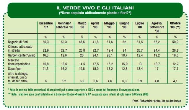 Secondo i dati del panel Ismea-AcNielsenCRA sugli acquisti degli italiani, nel mese di ottobre la numerosità degli acquirenti e quindi l'indice di penetrazione (rapporto tra coloro che hanno acquistato e popolazione italiana dai 18 anni in su) è stato del 15% per i fiori e dell'11% per piante, alberi e arbusti.