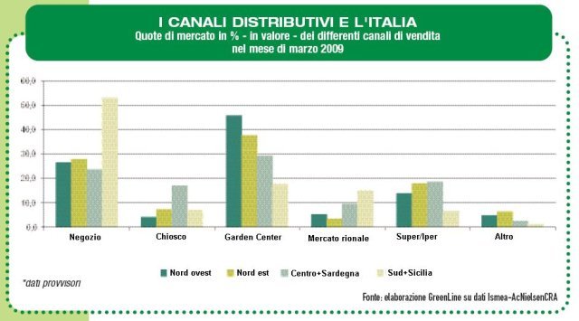 Il freddo dei mesi precedenti, nelle regioni del centro/nord Italia, ha rallentato notevolmente l'accrescimento e lo stadio di fioritura soprattutto delle piante non riscaldate o in pieno campo, così l'offerta è risultata inferiore ai livelli dello scorso anno. La spesa di verde vivo (fiori, piante, alberi e arbusti) in Italia, secondo i dati del Panel Ismea-AcNielsenCra, dopo una contrazione assai elevata nel bimestre novembre/dicembre, aveva ripreso quota nel primo bimestre dell'anno grazie a un'espansione del numero di acquirenti ma solo in determinate aree geografiche.