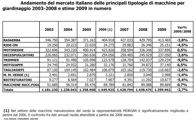 La consueta rilevazione trimestrale di Morgan sull’andamento del mercato della motocoltura per la cura e manutenzione del giardino, rivela che nei primi tre mesi del 2009 le vendite sono diminuite in modo importante.