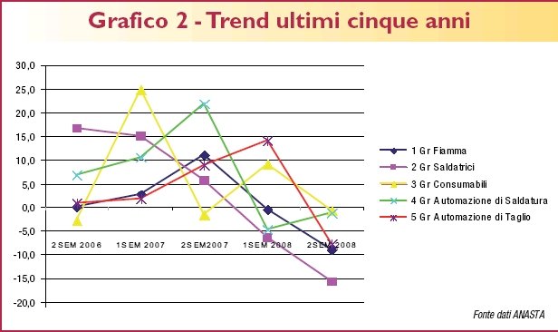 Confrontando i semestri con lo stesso periodo dell’anno precedente emerge ancora di più la differenza tra i diversi gruppi professionali, soprattutto tra investimenti e consumi. E la tendenza del 2009 continua a essere negativa come nell’ultimo trimestre dell’anno precedente. Essendo poi complementare a tutti i settori (industriale, professionale ma anche hobbistico), quello della saldatura e taglio deve confrontarsi con la realtà globale del mercato, anche se i prodotti ad alta qualificazione vivono un momento “meno negativo”.