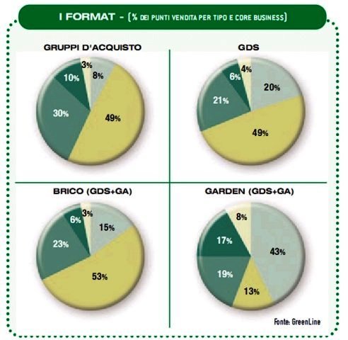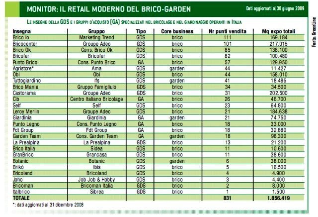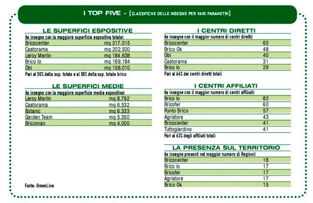 Le insegne che sono cresciute maggiormente negli ultimi 12 mesi sono state Tuttogiardino (9 punti vendita in più), Bricocenter (5), Punto Brico (5) e Brico Io (4).