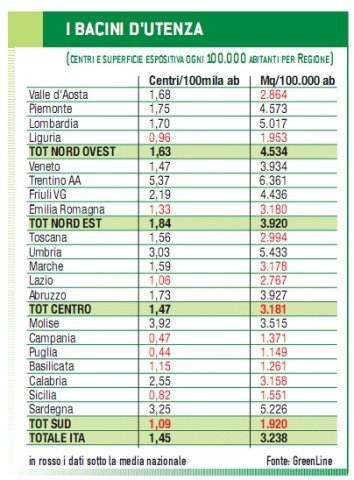 Una pura curiosità statistica: da quest’anno tutte le Regioni italiane hanno superato il traguardo dei 1.000 mq ogni 100 mila abitanti (un anno fa la Puglia e la Basilicata non avevano ancora raggiunto questo traguardo).