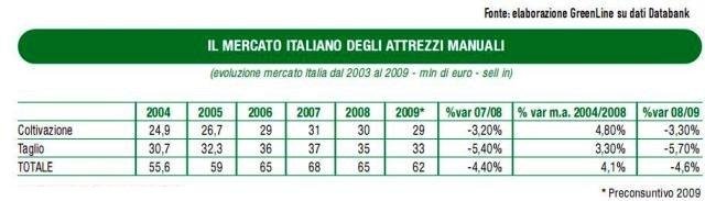 Diciamo subito che la crisi economica c'è stata per il settore degli attrezzi da taglio e da coltivazione. Però, ad ascoltare i resoconti delle aziende, si è avvertita meno che altrove: nel 2008 il mercato interno si è fermato a 65 milioni di euro (-4,4%) e le previsioni di Databank per il 2009 parlano di un'ulteriore calo del 4,4%.