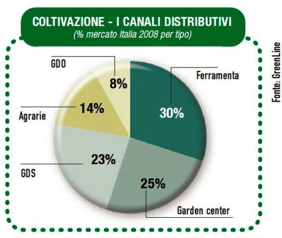 Il preconsuntivo 2009 fornito da Databank per il settore indica un calo delle vendite delle attrezzature per giardinaggio intorno al -4,6%, che corrisponde a livello di singoli operatori a performance disomogenee.In termini di canali distributivi, la ferramenta perde il 3% sia nel mercato degli attrezzi da taglio sia in quello degli attrezzi da coltivazione e, in parallelo, l'avanzata della GDS e delle agrarie sono, a livello di trend, le novità più interessanti. In valore assoluto, tuttavia, le ferramenta continuano a mantenere la testa della classifica dei canali distributivi, seguite dai garden center.