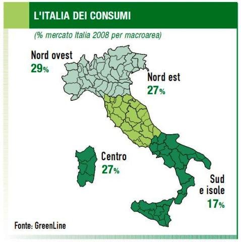 Da segnalare, infine, come nel 2008 siano crescite del 2% le vendite nel nord/ovest e dell'1% al centro, mentre non si sono registrate variazioni al nord/est: a pagare un calo del 3% è stato il sud.