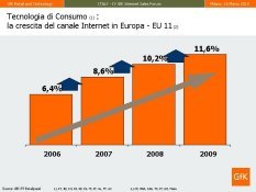 E’ quanto emerge dalle rilevazioni di GfK Retail & Technology presentate nel corso del Quarto Forum sulle Internet Sales in collaborazione con ANDEC. In Europa oltre 5,9 milioni di atti d’acquisto sono transitati nel canale online, sviluppando l’11,6% delle vendite totali rilevate dal Panel GfK (nel 2006 il canale pesava soltanto 6,4%). Al contrario del mercato italiano, dove il canale ha subito una flessione, in Europa (11 Paesi rilevati) il canale è cresciuto (+9,6% rispetto al 2008) supportato da un incremento delle vendite in tutti i settori. I settori con crescita maggiore sono stati Piccoli Elettrodomestici (+27%), Telefonia (+25%), Grandi Elettrodomestici (+11%) e IT (+10%).