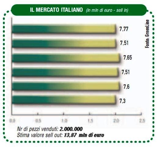 Il prodotto maggiormente acquistato sono i vaporizzatori, che con circa 940.000 pezzi venduti rappresentano il 47% delle vendite totali, seguiti dalle pompe a pressione manuali (37% delle vendite). Naturalmente stiamo parlando di volumi: se analizziamo i valori, cioè il fatturato, la situazione di ribalta completamente. I vaporizzatori rappresentano soltanto il 9% del giro d'affari totale dell'irrorazione italiana, contro il 40% delle pompe a zaino in plastica, che sono il settore più importante.