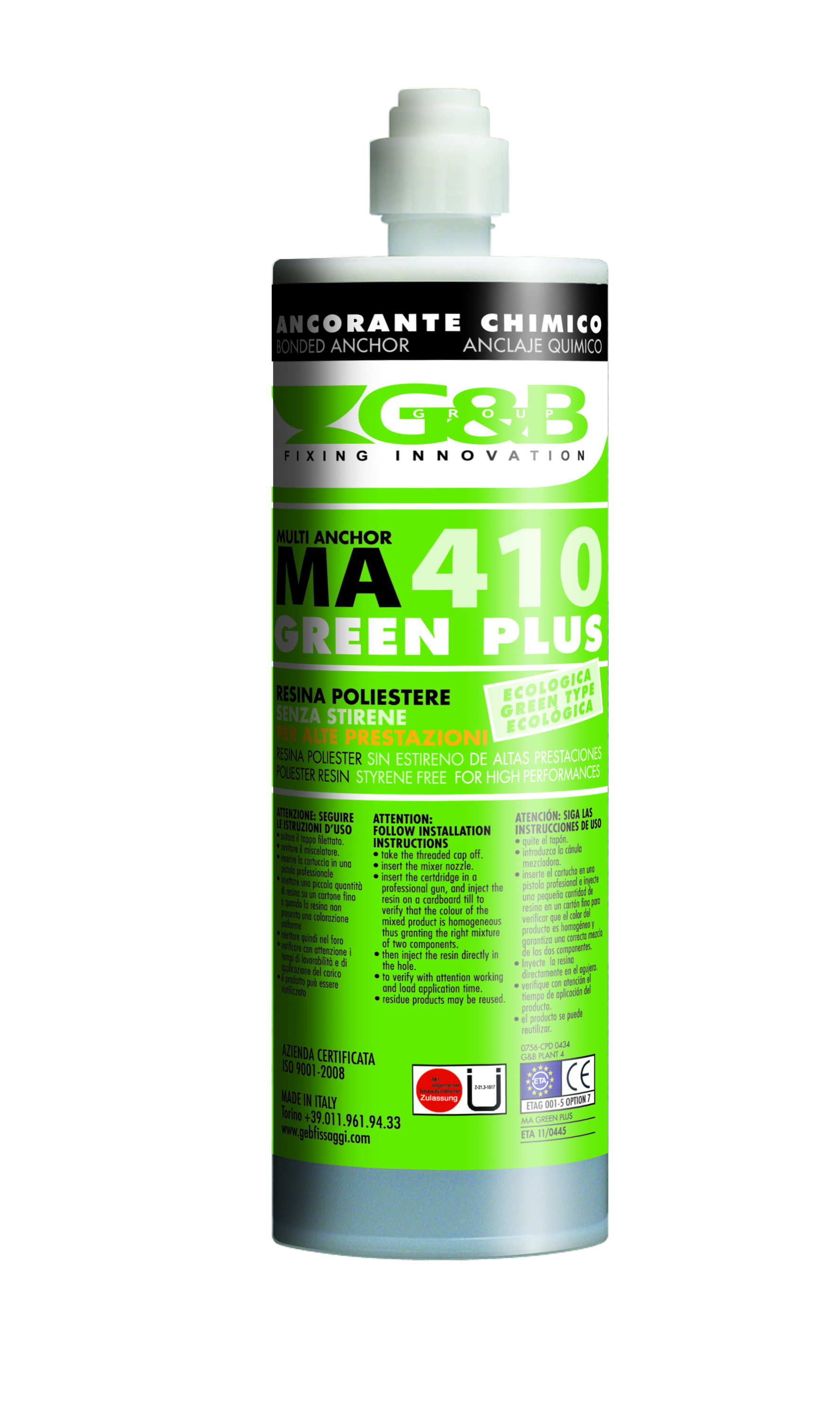 Tra le novità in G&B Fissaggi si segnala il nuovo ancorante in nylon certificato GX-L per fissaggi prolungati, gli ancoranti chimici con doppia certificazione CE a base di resina epossidica (Epo Plus RE - CE opzione 1) e vinilestere (Gebofix Pro - CE opzione7) per applicazioni con barre filettate e ferri da ripresa, la nuova resina a base poliestere certificata CE opzione 7 (MA Green Plus).