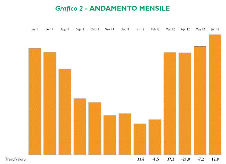 A testimonianza che il fattore meteorologico ha un ruolo importante, la situazione è diametralmente opposta nei mesi di alta stagionalità del mercato; ad aprile e maggio, in corrispondenza di un'ondata di freddo e pioggia, i trend sono negativi mentre l'arrivo di giugno e della bella stagione provocano un'inversione di tendenza nel trend che segna un confortante +12,9%.