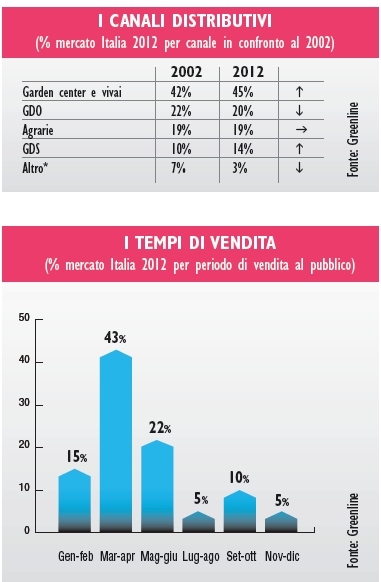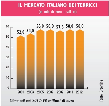 Il mercato italiano dei substrati hobbistici ha vissuto nel 2012 un anno di stabilità, confermando i circa 58 milioni di euro di giro d’affari sell in, pari a una stima di 93 milioni di euro con prezzi al pubblico. La primavera anticipata del marzo 2012, che ha determinato uno dei migliori mesi degli ultimi anni per le vendite di tutti gli articoli per il giardinaggio in Italia, ha naturalmente premiato la categoria dei terricci, che proprio all’inizio della primavera ha il suo massimo picco di vendita. Il 58% del sell out si sviluppa tra gennaio e aprile, con un balzo del 43% nel bimestre marzo/aprile. Un trend che ci viene confermato dalla principali aziende del settore.“Il nostro settore fortunatamente rispetto ad altri si è salvato nonostante la crisi economica generale – spiega Marco Petranca, direttore generale di Vigorplant –: la ragione può essere ricercata nel fatto che i consumatori hanno preferito investire il loro tempo, denaro ed energie nella cura del verde, che rappresenta un hobby dai costi relativamente contenuti”.
