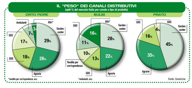 Ma è in tema di prato che non ce n’è per nessuno o quasi, dato che garden (45%) e agrarie (35%) quasi monopolizzano il mercato, lasciando a GDS (16%) e GDO (4%) il quinto che resta.