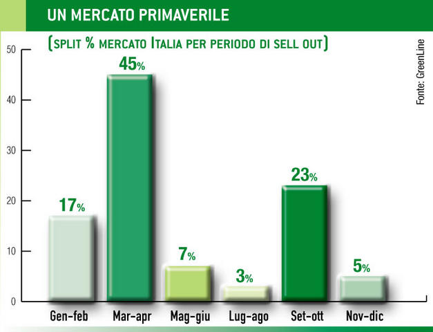 Non stupisce nemmeno che le vendite siano caratterizzate da una marcata stagionalità: 45% tra marzo e aprile, 23% tra settembre e ottobre, 17% tra gennaio e febbraio, e briciole negli altri bimestri. Nei prossimi anni non è però esclusa una attenuazione della stagionalità sul secondo bimestre, se il clima continuerà a proporre inverni poco rigidi: perché è quando si inizia a sentire caldo che viene voglia di iniziare con le nuove semine.