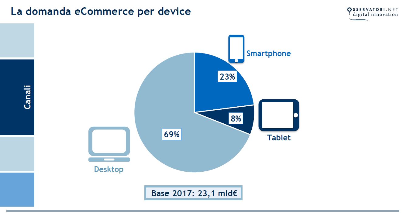 App). Un trend indicato anche da Mangiaracina, “Sottolineo la consistente crescita degli acquisti via Smartphone (+52%) che raggiungeranno quota 5,3 miliardi di €. Se a questi aggiungiamo gli acquisti via Tablet, supereremo i 7 miliardi di euro, ossia quasi un terzo dell’intero mercato e-commerce italiano”.