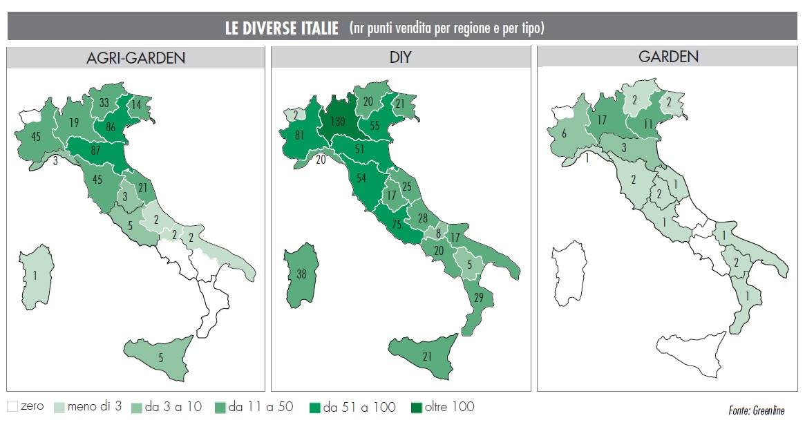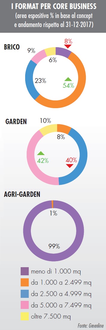 Per fotografare il commercio organizzato specializzato nel brico-garden operante in Italia, abbiamo selezionato le insegne della GDS (Grande Distribuzione Specializzata) e i Gruppi d’Acquisto (Consorzi) con almeno 3 punti vendita e una propensione allo sviluppo. Le superfici espositive indicate sono relative alle aree coperte destinate alla vendita: sono quindi esclusi i parcheggi, gli uffici e i magazzini.
