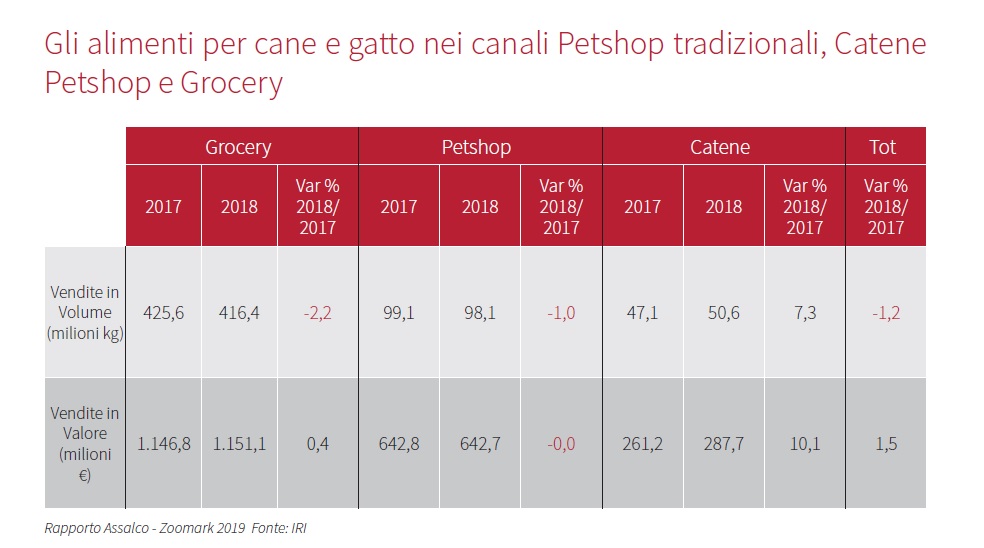 Pur crescendo nel fatturato, nel 2018 il food cane e gatto ha subito una flessione dell’1,2% in volume, giustificato sia da un aumento dei prezzi sia dall’orientamento del consumatore verso prodotti premium, di alta qualità, con formati più piccoli e in genere verso prodotti a maggior valore aggiunto, come gli alimenti bio, naturali, light, con un’unica fonte di proteine o con materia prime selezionate.