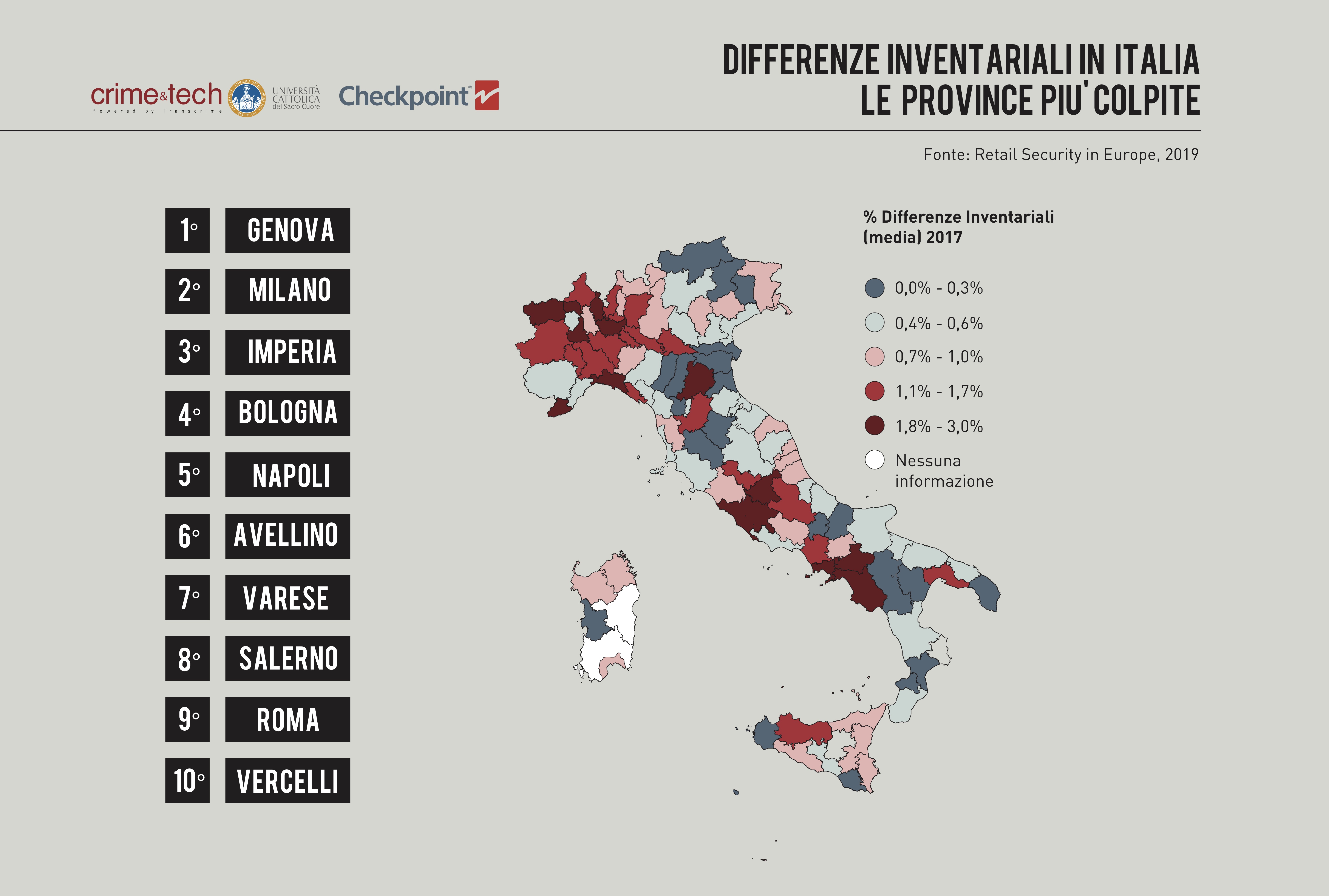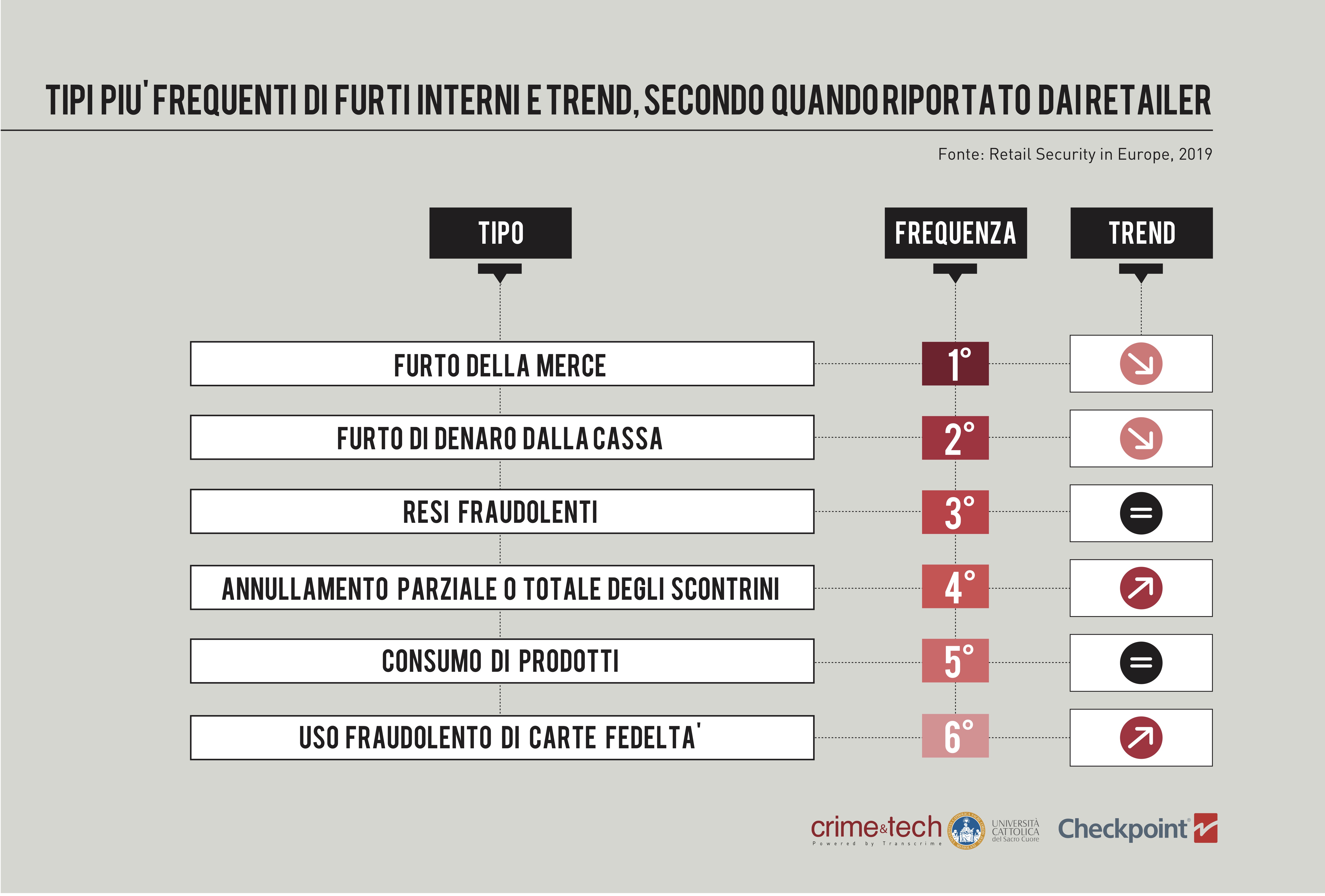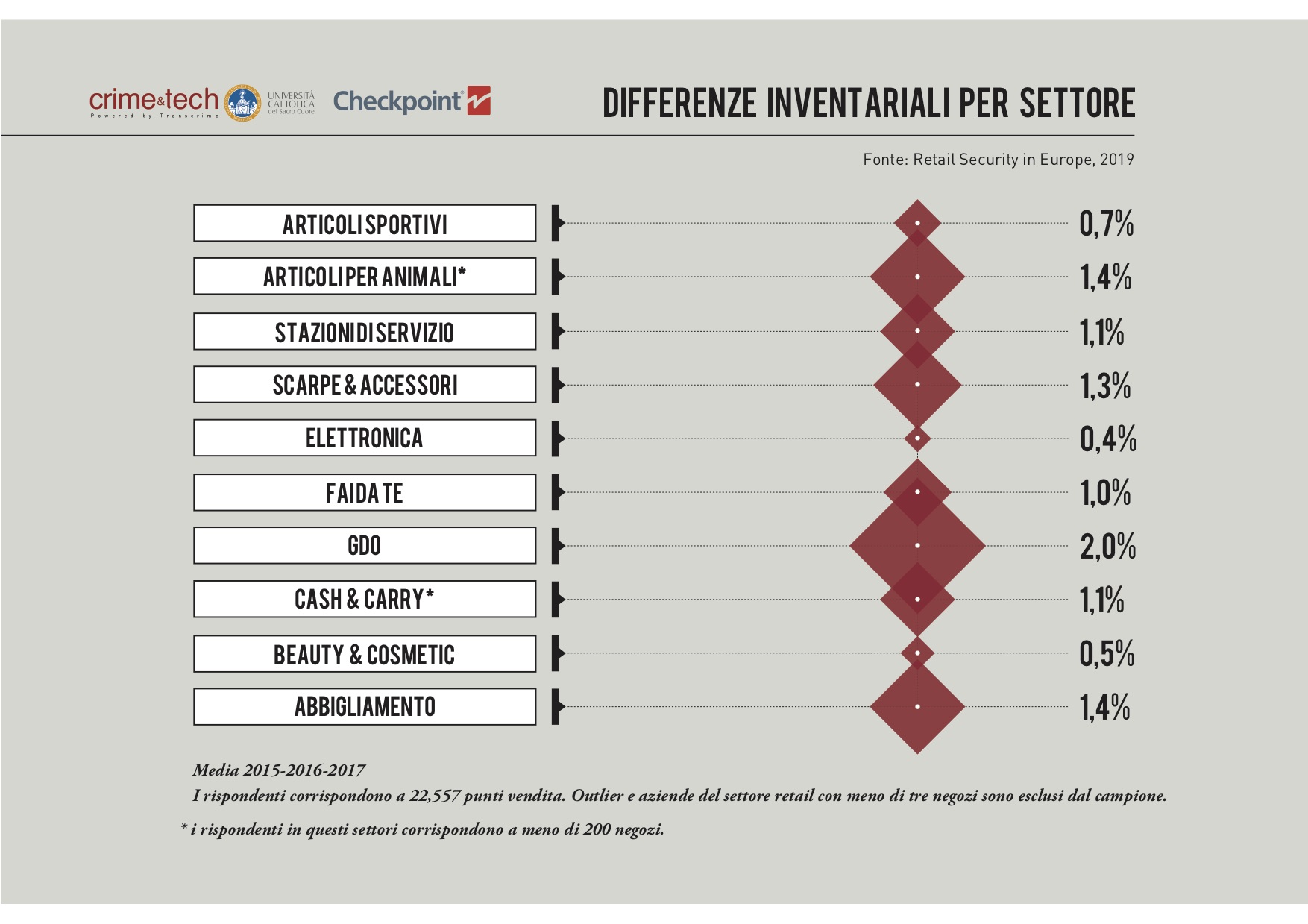 - I reati più comuni che determinano le differenze inventariali comprendono il taccheggio, i furti commessi dai dipendenti e le frodi. Sono in aumento anche forme fraudolente interne più sofisticate, come falsi vuoti, resi fittizi, e frodi legate alle carte fedeltà.