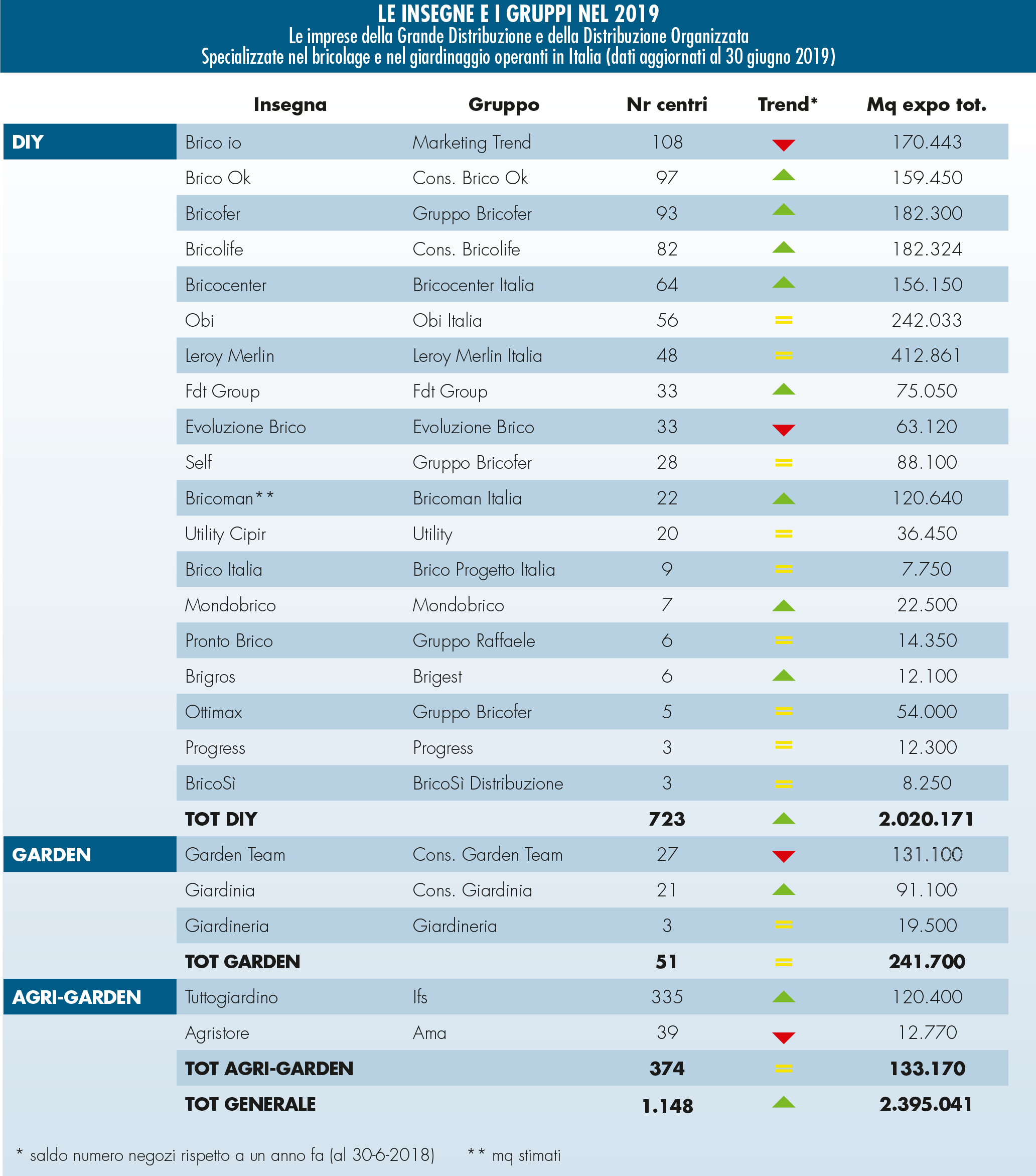 Analisi » Punti vendita brico-garden in Italia: l’evoluzione della rete nel 2019