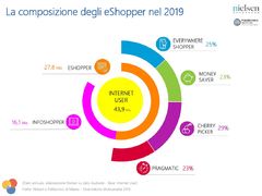 Fra gli eShopper, il segmento più numeroso è quello dei Cherry Picker (8,1 milioni, il 29% degli eShopper), gli utenti che si affacciano per la prima volta al mondo degli acquisti online. Seguono gli Everywhere Shopper, i consumatori più evoluti che si muovono liberamente da un canale all’altro nella loro relazione con i brand (6,9 milioni, il 25% degli eShopper). Sono 6,4 milioni (il 23% degli eShopper) i Money Saver, gli utenti che usano la rete solo per soddisfare la loro esigenza di risparmio; e, infine, 6,4 milioni (il 23% degli eShopper) sono i Pragmatic, le persone che si avvicinano all’eCommerce principalmente per risparmiare tempo e denaro e per accedere a un processo di acquisto più efficiente.