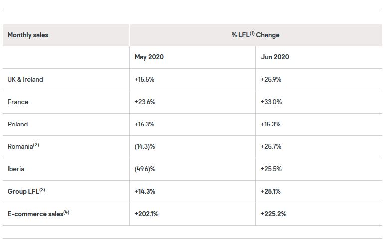 Tornando ai dati più recenti, quelli relativi al mese di giugno, i negozi gestiti del gruppo Kingfisher hanno registrato crescite importanti in tutti i Paesi, comprese tra il 15% della Polonia e il 33% della Francia.