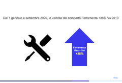 Da gennaio a settembre, le vendite del settore ferramenta hanno fatto registrare un +38% sullo stesso periodo del 2019, e in particolare la merceologia elettroutensili (che rappresenta una delle più importanti dell'intero comparto) un +20% sui primi nove mesi dell'anno precedente.