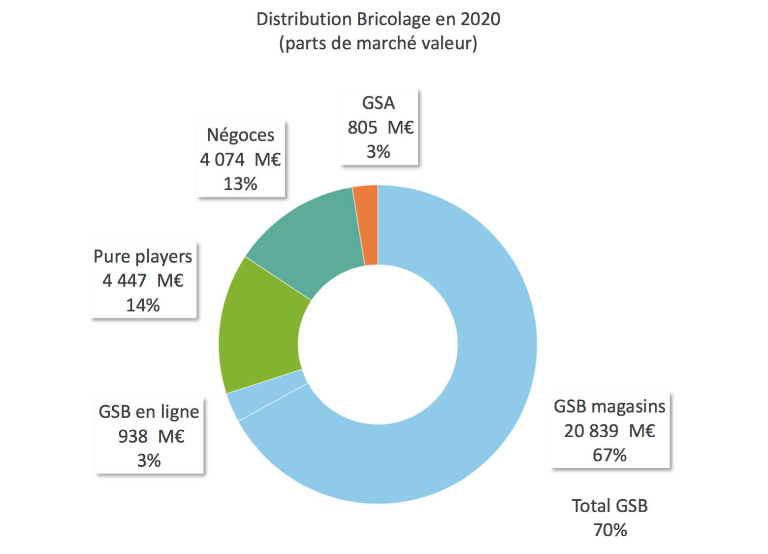 Il leader di mercato resta Adeo (Leroy Merlin, Bricoman e Weldom) col 43%, seguito da Kingfisher (Castorama e Brico Dépôt) col 27% Terza piazza per il gruppo Les Mousquetaires (15%).