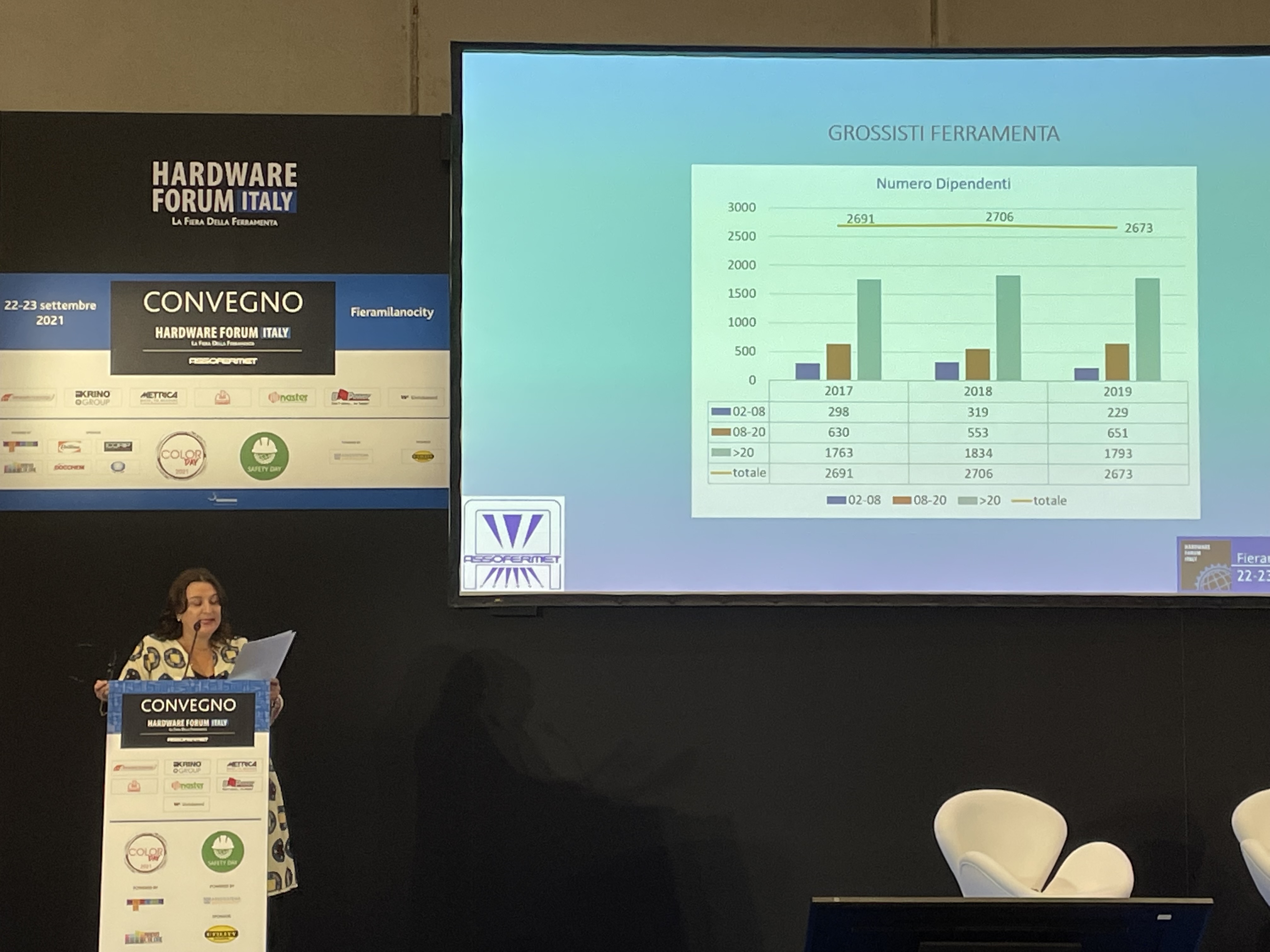 "Secondo l’agenzia delle entrate i codici ateco ferramenta sono 34.258, per circa 100.000 addetti" ha segnalato Sabrina Canese, "Cerved ha analizzato circa 16.000 ferramenta per un fatturato di 8,6 miliardi di euro nel 2019.I codici Ateco ingrosso invece sono piu di 4.000, però da sempre il nostro riferimento di analisi valuta dai 60 ai 70 grossisti, nello specifico 57 società di capitali che sono considerate rappresentative del mercato. Per il 2020 disponiamo solo del dato di 32 aziende su 57, con un incremento medio del 11,47%.