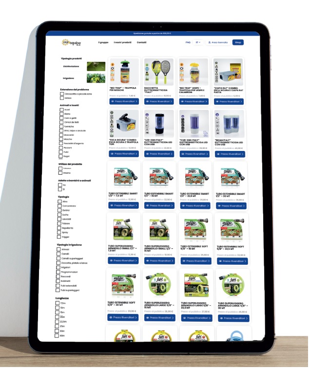 Naturalmente è prevista una registrazione, tramite partita Iva, sottoposta alla nostra approvazione, volta a riservare l’accesso esclusivo ai rivenditori specializzati.
