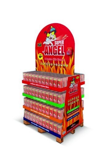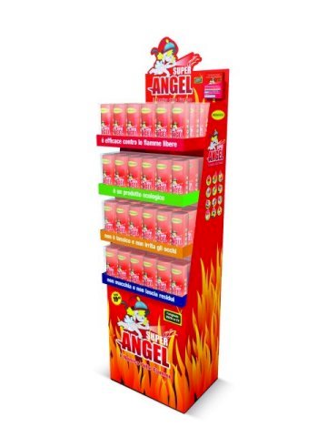 Antonio Zecchin: SuperAngel “il nemico delle fiamme” è una nuova linea studiata e progettata per i punti vendita della GDS, ai quali abbiamo proposto espositori da tavolo e da pavimento, display da tavolo e da pavimento, pallbox, vetrofanie. È un prodotto molto interessante: uno spegnifuoco spray portatile che non inquina, non danneggia la pelle né irrita gli occhi; non fa schiuma, non macchia, è pronto all’uso e funziona in tutte le posizioni. Accolto molto bene dal mercato italiano, ha suscitato un certo interesse anche all’estero e Paesi come la Spagna e la Svizzera hanno chiesto di poterlo distribuire.