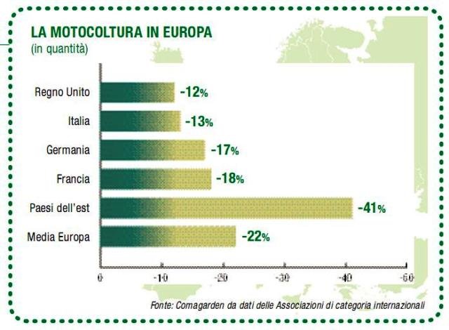 Nel 2009 il mercato europeo della motocoltura hobbistica ha 'bruciato' circa un quarto delle sue vendite e si accinge a chiudere l'anno con un calo del 22%. Una brusca caduta che richiederà almeno 4 anni di sviluppo per far tornare le vendite ai livelli del 2007.