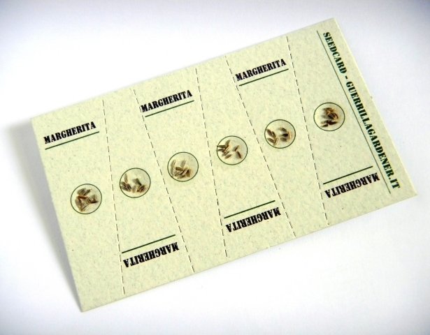Le Seedcards sono carte contenenti dei semi che possono essere spezzate, interrate e fatte germogliare. La loro funzione è far riflettere sul valore che può avere una sola manciata di semi. La carta e colla usate sono completamente naturali e si disperdono nell’ambiente in maniera sostenibile. È un piccolo gesto simbolico, ma che offre un interessante spunto di approfondimento sul tema.