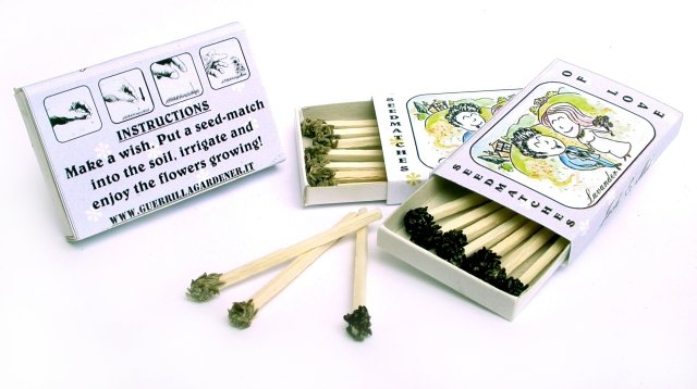 I Seedmatches sono “fiammiferi di semi”, cioè aventi la capocchia composta di semi invece che di zolfo. Anch’essi vanno semplicemente interrati per poi vederli germogliare.