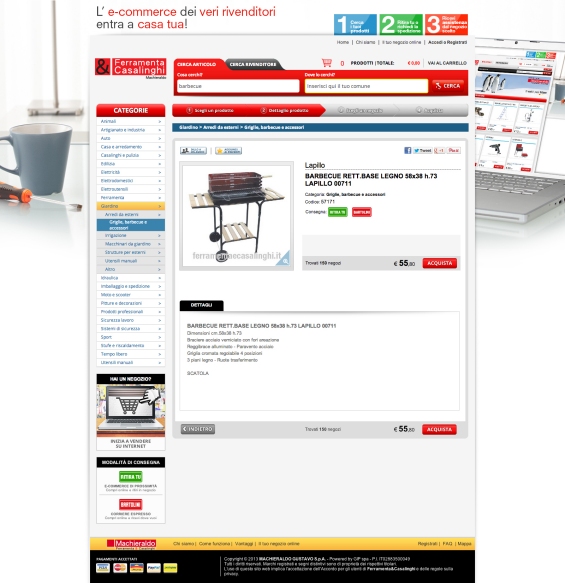 Immagini di essere al lavoro fino a tardi e di dover a tutti i costi acquistare un barbecue per la grigliata di domenica con gli amici. Ha due soluzioni: O girare tutti i punti vendita che conosce per cercare il prodotto più adatto a lei (caratteristiche tecniche, dimensioni, prezzo, garanzia, ecc….) e arrivato al quinto punto vendita capire che il prodotto adatto lo trattava il primo, oppure digitare ferramentaecasalinghi.it, visionare i prodotti, cercare il rivenditore con disponibilità del prodotto più vicino a lei, acquistare! E mentre torna a casa dall’ufficio passarlo a ritirare! Tempo impiegato 10-15 minuti, sicurezza dell’acquisto 100%.