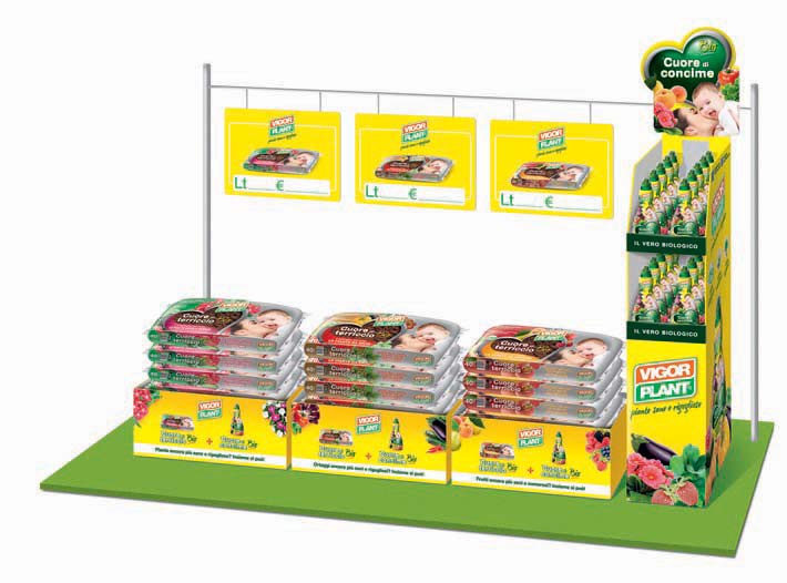 Proprio nell’ottica di informare e coinvolgere il consumatore è stato studiato uno speciale espositore dal design e dai colori accattivanti, ma soprattutto di dimensioni contenute in modo da poter essere posizionato facilmente anche in avancassa o accanto ai terricci o addirittura alle piante. Sui fianchi dell’espositore abbiamo riportato informazioni tecniche dettagliate per il consumatore.
