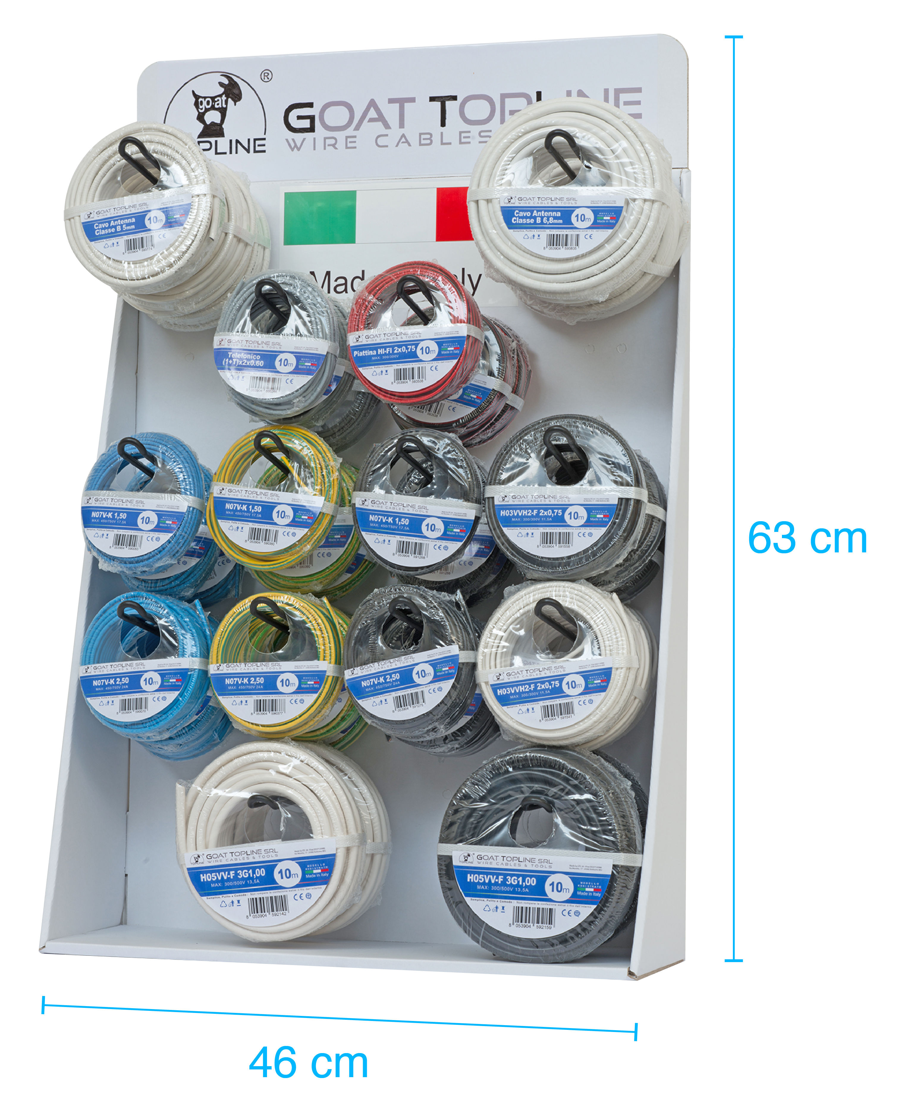 Camilla Capra: Per certi quantitativi e soprattutto per un’insegna che ha più negozi, abbiamo la possibilità di personalizzare il layout dei nostri espositori per le offerte “Smart” ed “Easy”, rispettivamente quello da banco e quello a scatole. Invece, per il nostro classico espositore di lamiera di colore blu elettrico manteniamo il nostro logo per un discorso di brandizzazione e di rimando immediato al nostro prodotto: La Matassina GTL. Per quanto riguarda invece l’assortimento degli articoli, come accennavo poc’anzi, è possibile scegliere in base alle proprie necessità. Nella nostra gamma sono presenti 19 diverse tipologie di cavo declinate nelle varie sezioni con metrature che vanno dai 5 metri fino ai 50. Quindi, direi che abbiamo risposte per ogni tipo di richiesta. Questo è uno dei vantaggi dell’essere giovani con una struttura snella ed agile rivolta in primis alla soddisfazione del cliente.