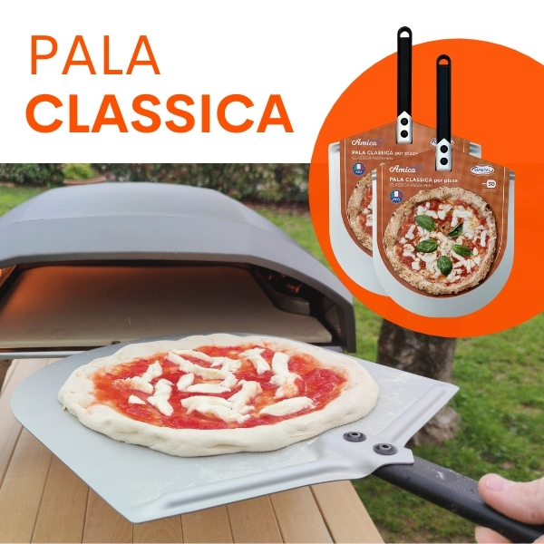 La pala è lo strumento che permette di prelevare con estrema facilità il disco di pizza condito dal piano di lavoro e inserirlo nel forno, in modo sicuro e veloce. È realizzata in alluminio anodizzato: resistente, scorrevole e, soprattutto, igienizzabile, a differenza del legno talvolta usato per gli strumenti domestici.