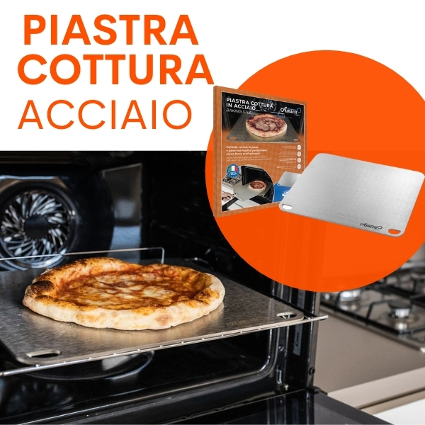 La piastra deve essere collocata in posizione centrale o nel livello più alto del forno, impostato alla temperatura massima. Quando il forno ha raggiunto la temperatura significa che la piastra è pronta per cuocere la pizza con risultati paragonabili ad un forno a legna professionale! L’ottima conducibilità termica dell’acciaio, fino a 10 volte superiore rispetto alle comuni pietre refrattarie, permette un riscaldamento rapido della piastra e la cottura ottimale e uniforme della pizza. La misura della piastra 40x35 cm per 4 mm di spessore è perfetta per essere usata nei comuni forni elettrici domestici. L’acciaio è un materiale indistruttibile, resistente ad urti e shock termici, facilmente igienizzabile: pulizia e manutenzione sono particolarmente semplici ed è lavabile in lavastoviglie.