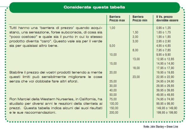 Un centro giardinaggio deve concentrarsi sulla generazione Jones e quella dei baby boomer, ha un mercato dal target più ampio. Ma spetta a tutti comprendere le consumatrici e i loro desideri quando si tratta di arredi da giardino. Entrambe le parti dovrebbero essere coscienti dei limiti, delle barriere di prezzo del prodotto e di come possono aggiungere valore per superare la barriera di prezzo. Quindi essi devono discutere della posizione di prezzo ottimale per quel prodotto.