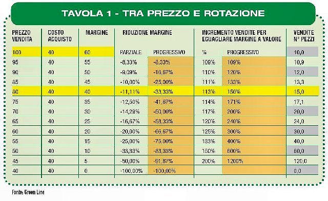 Ovviamente una variabile che influenza molto le scelte di prezzo è la velocità di vendita che un prezzo basso dovrebbe stimolare. L’incremento della rotazione talvolta permette di mantenere il valore del margine a fronte di un taglio di prezzo.